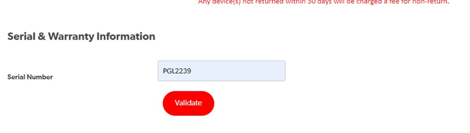 6. Enter serial Number and select Validate