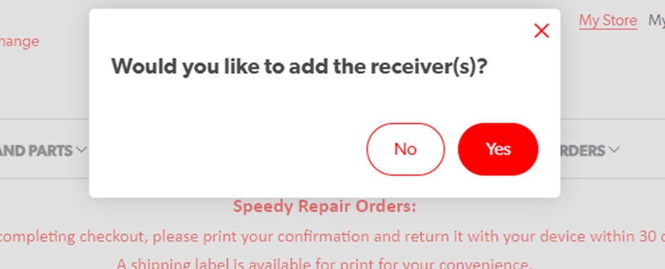 9. Select reason for repair and enter the customer email if it is available