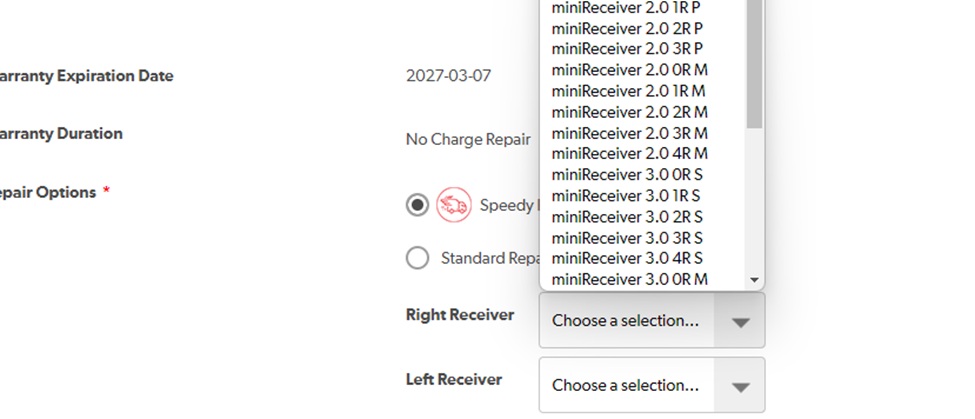 - Enter the receiver size for the particular side entered. miniReceiver 2.0 for X and older model, 3.0 for AX and newer.