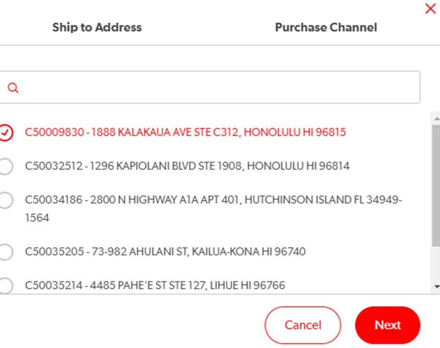 3. Select the Ship to address that the repaired aids should be shipped to and click Next